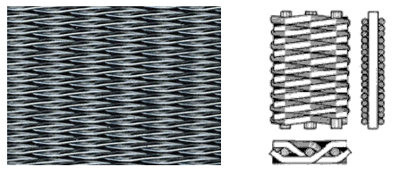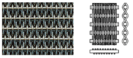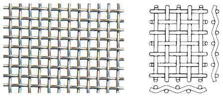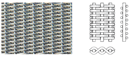 Each weft wire passes alternately above and below every successive pair of warp wires and vice versa. This weave permits a heavier wire diameter to be used than would be possible in a plain weave with similar mesh count. This ability allows the application of this wire cloth for greater loads and finer filtration.